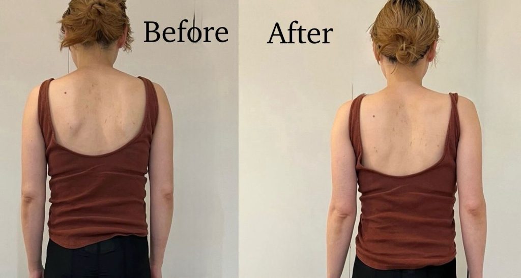- 肩甲骨の位置が正常な位置に戻り、背筋がまっすぐに